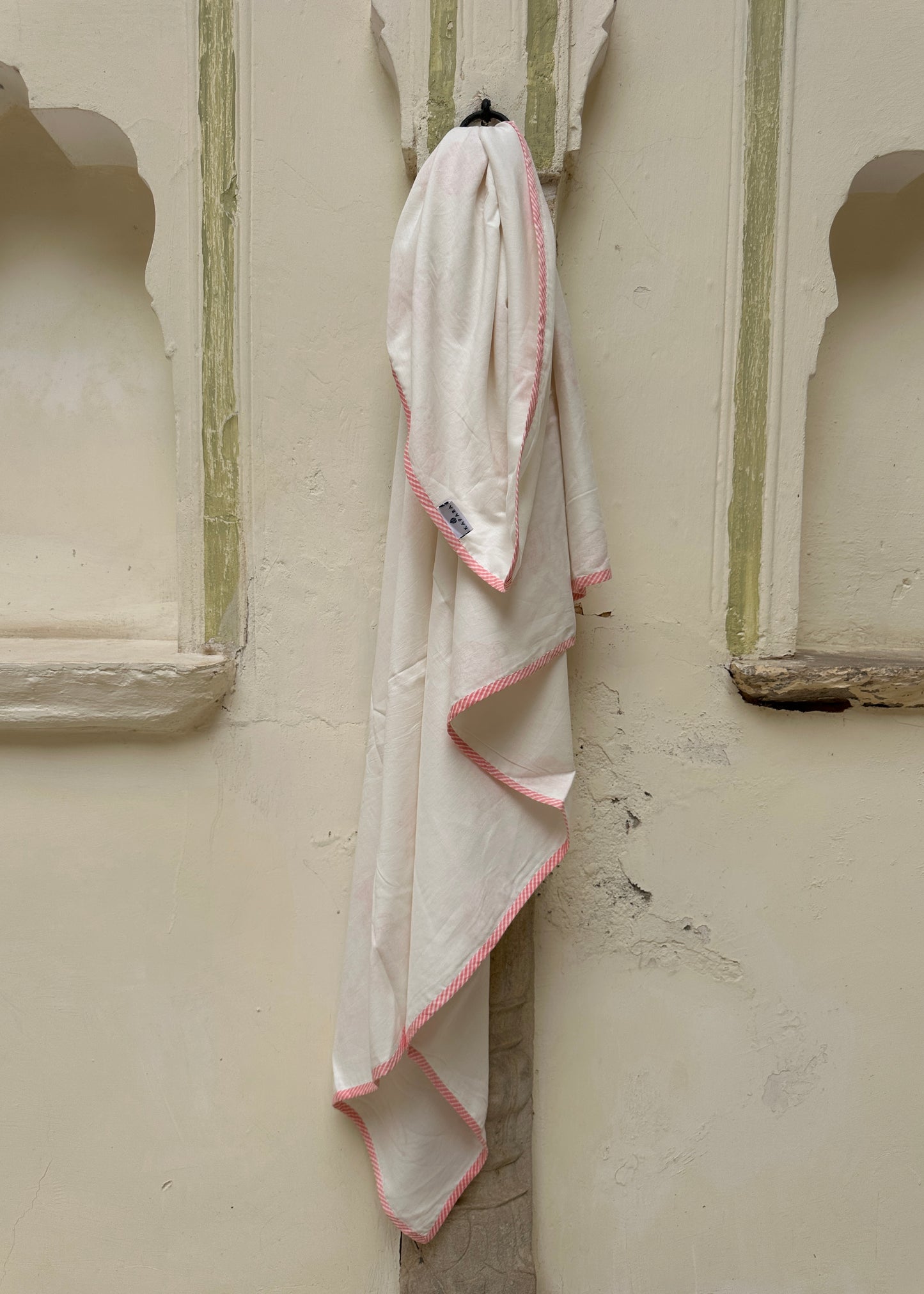 Made from three layers of soft organic cotton voile, with a hand block printed middle layer and a delicate strip-edged finish, it’s light, airy, and gentle on baby’s skin. Unlike a traditional thick blanket, this sheet is designed for breathable coverage, comfort, and practicality, keeping babies cool and cosy without overheating.