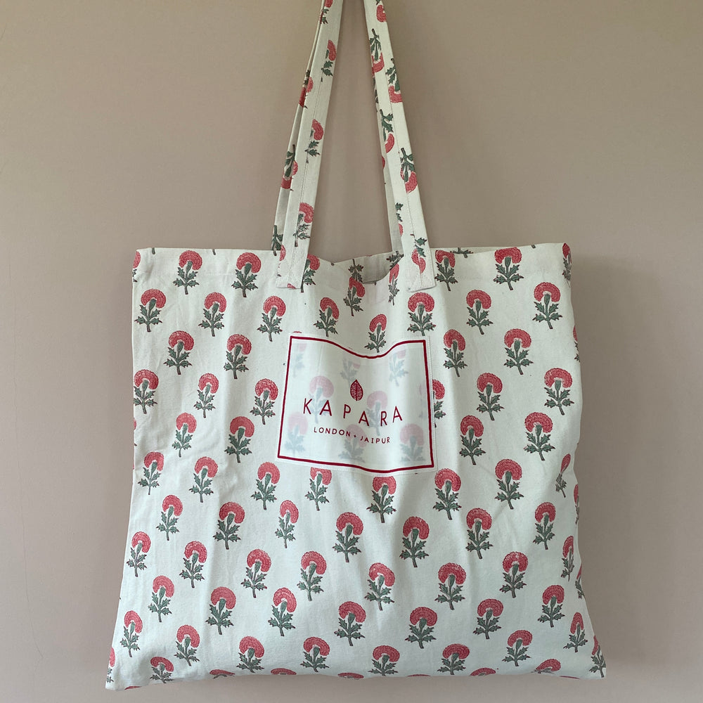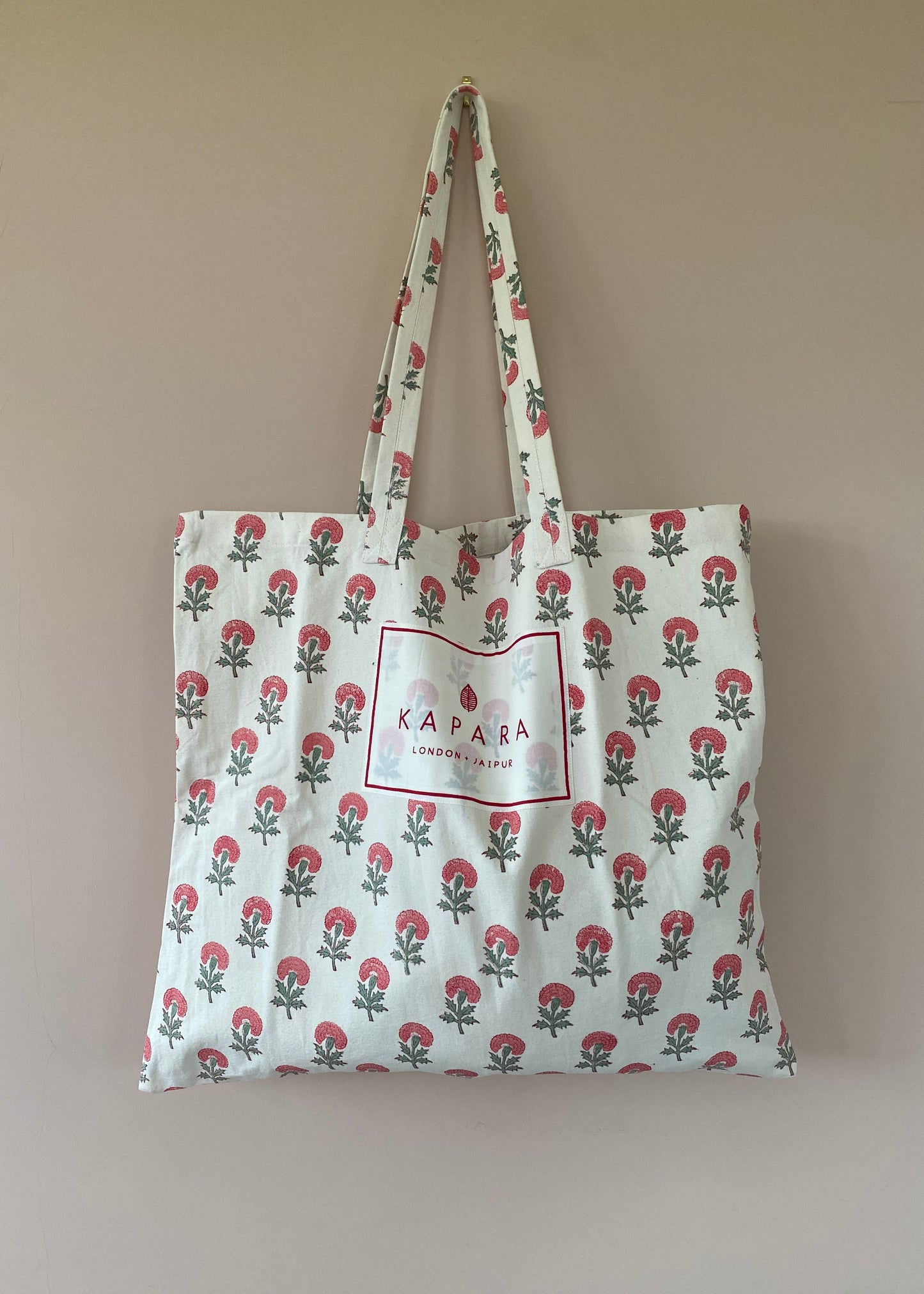 The Amba Bag – Quilted Cotton Canvas Tote (Pink/ Green)