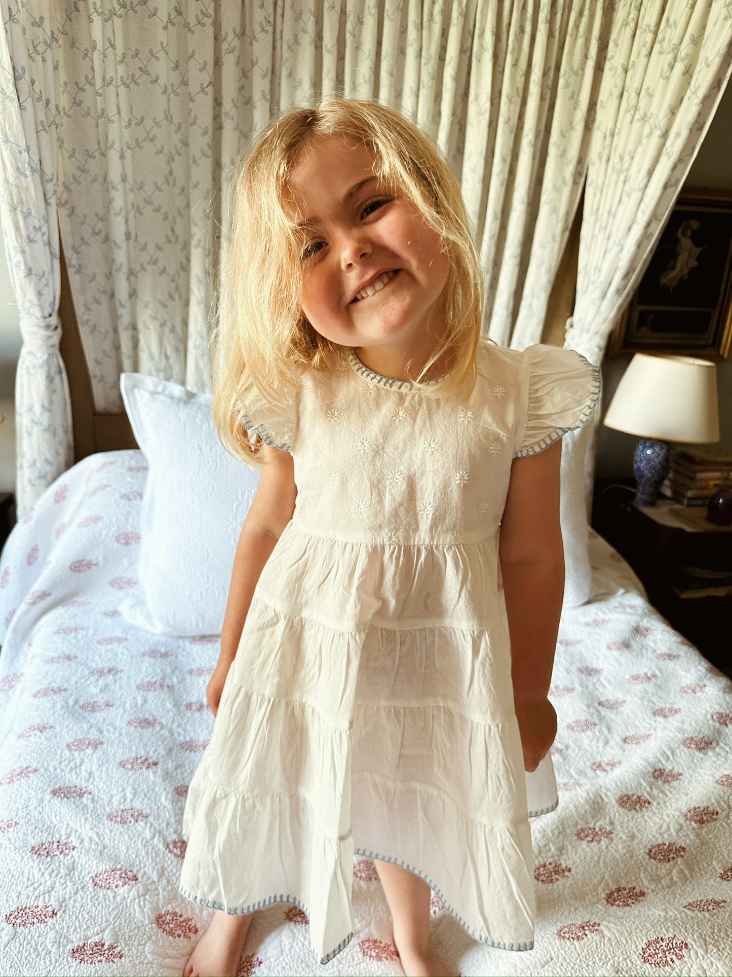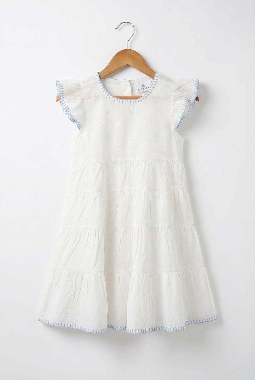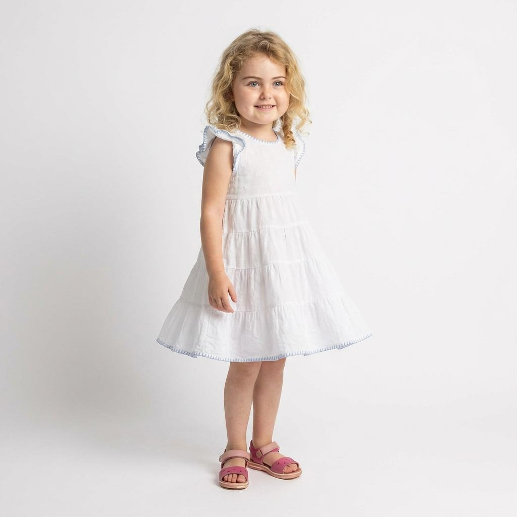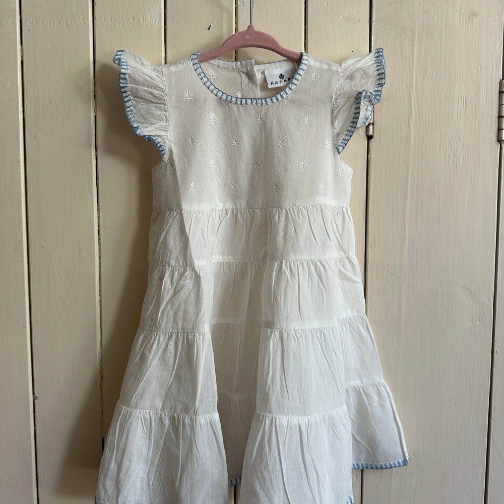 Our new Amba girls’ nighties are designed for both sleep and everyday adventures. Made from BCI cotton, this tiered style features delicate embroidery and a charming blanket stitch trim.
