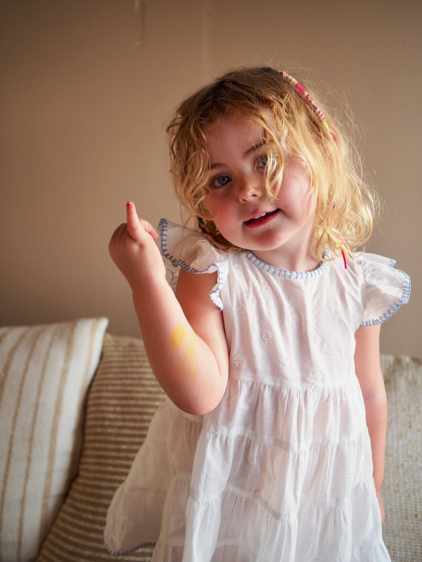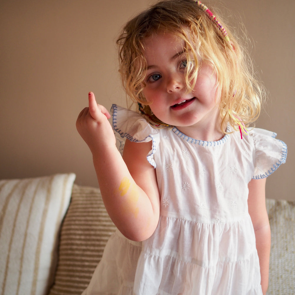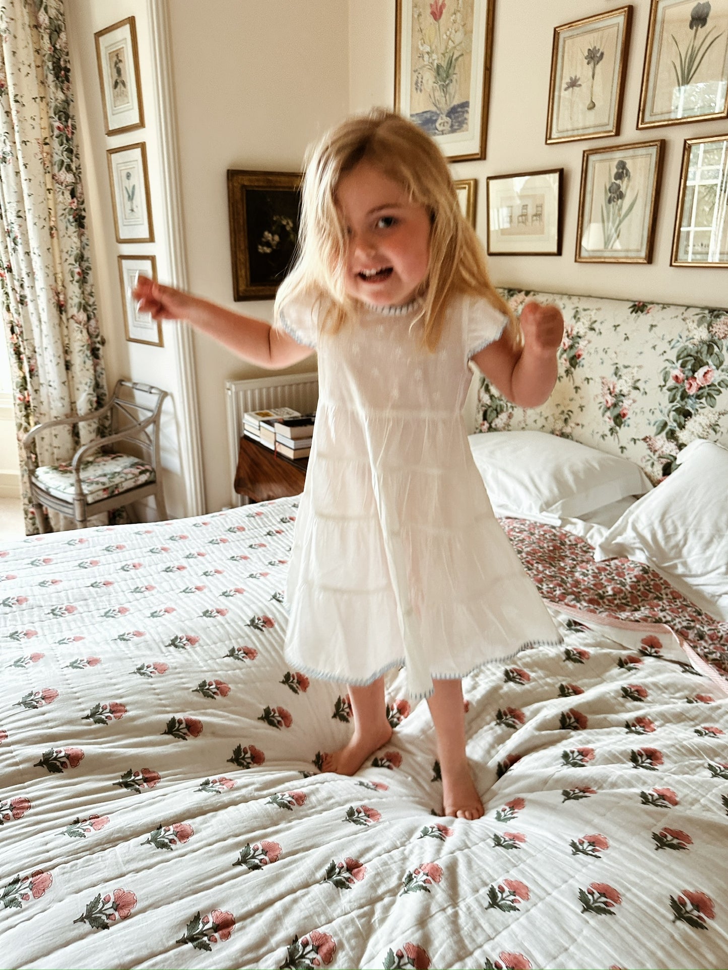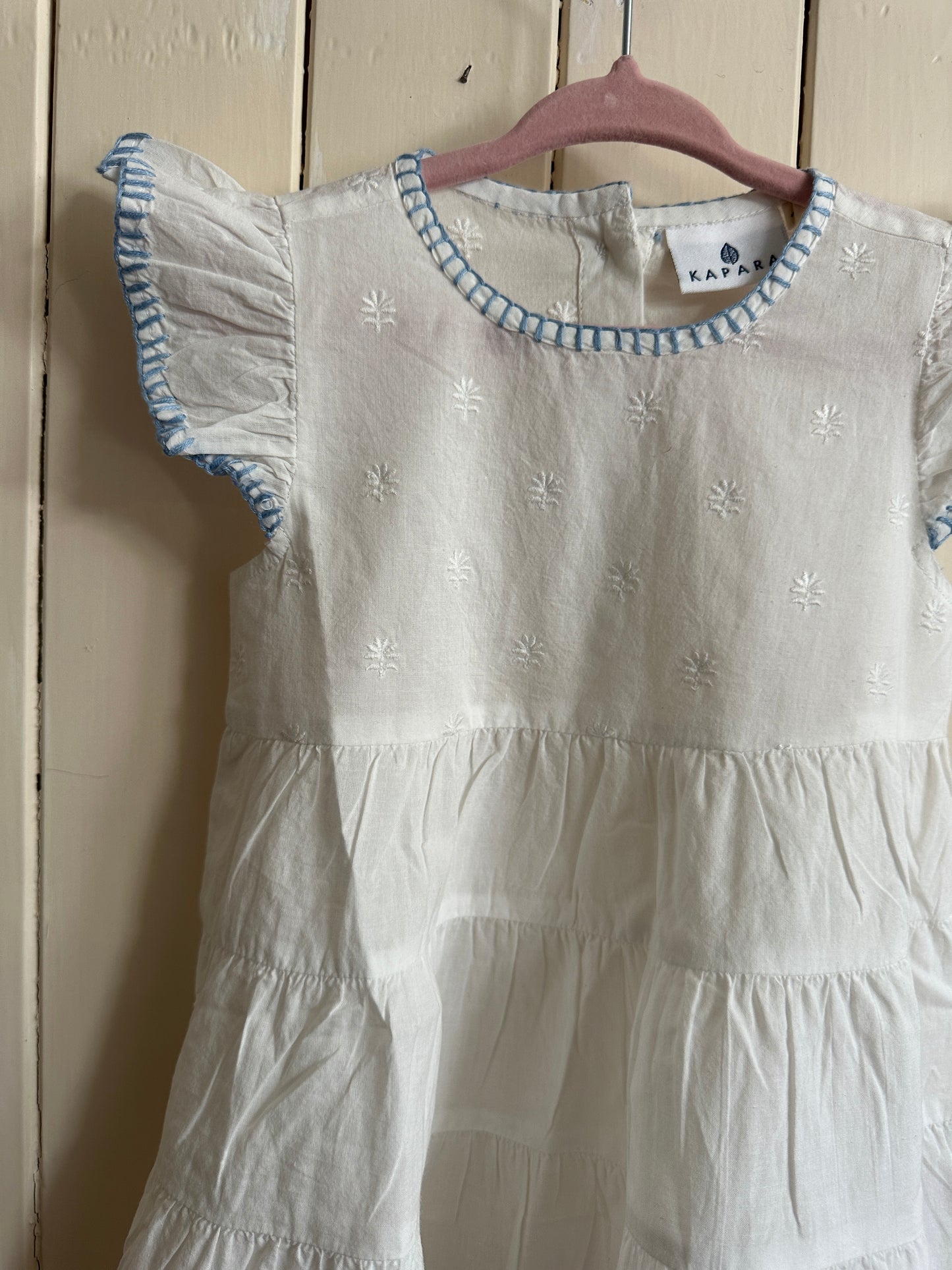 Our new Amba girls’ nighties are designed for both sleep and everyday adventures. Made from BCI cotton, this tiered style features delicate embroidery and a charming blanket stitch trim.