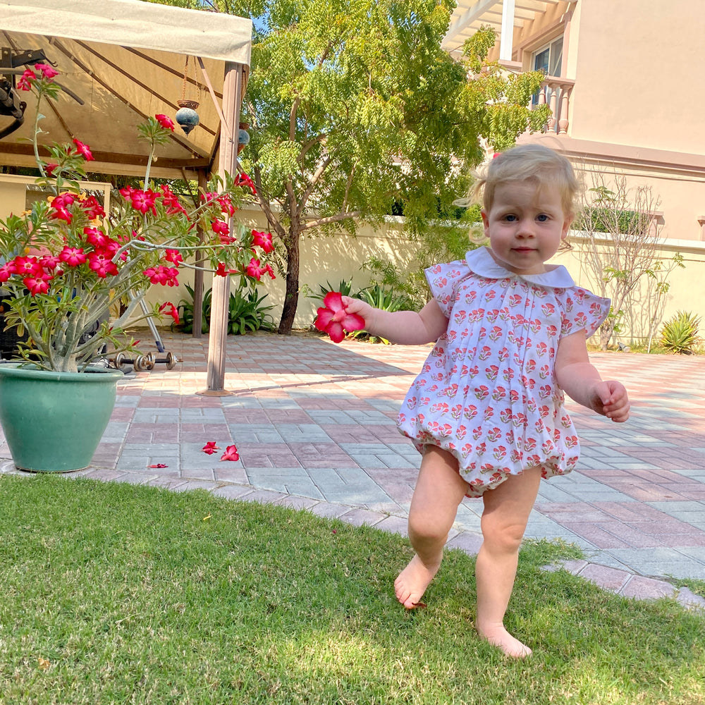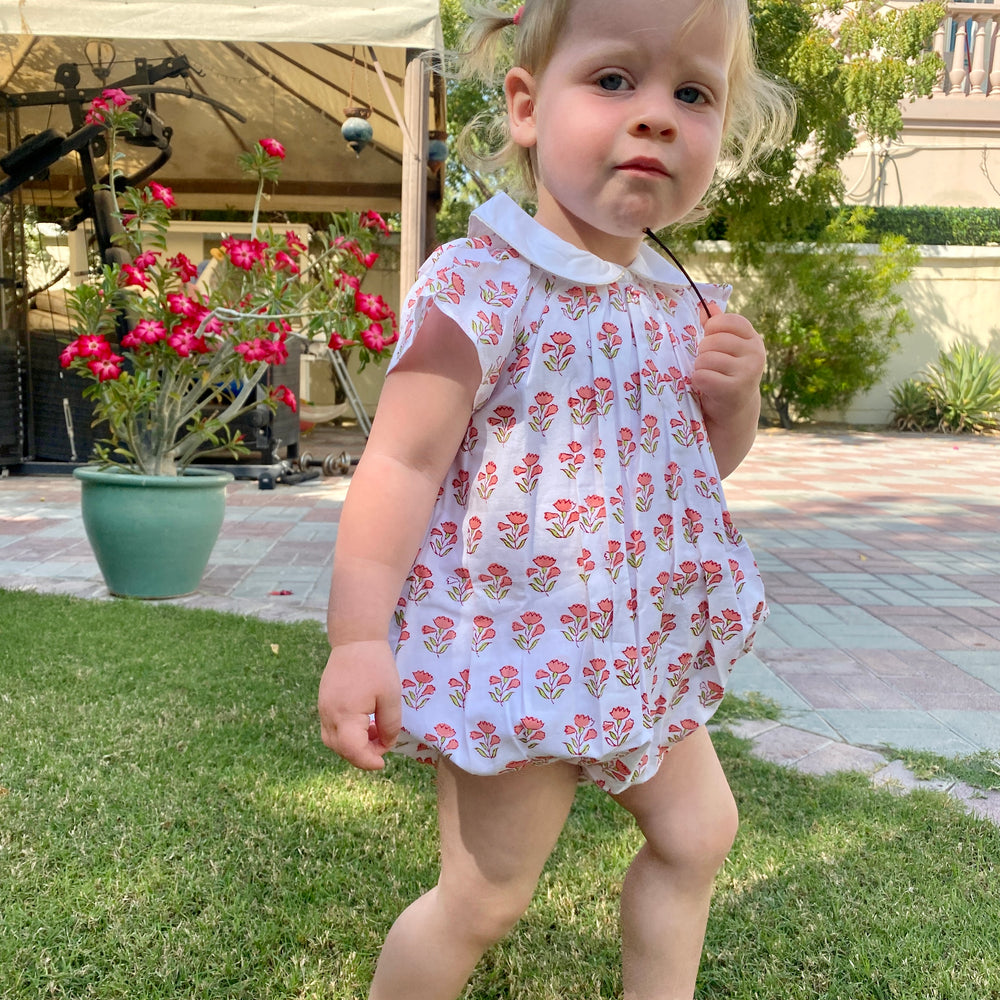 A really pretty girls romper new to the collection this Summer. The rompers are simple and sweet for everyday use in the Summer months and on holidays. The rompers are super versatile as well as being worn on its own they also look lovely under dungarees, shorts or a skirt.
