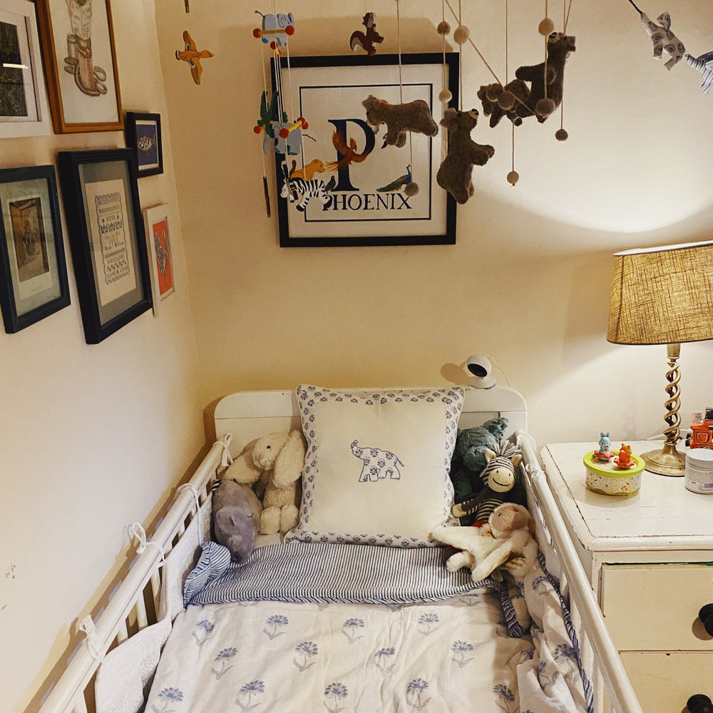 Our new nursery cushions are hand block printed and appliquéd in Jaipur. One side has a sweet elephant appliquéd on with pink embroidery and the other is block printed all over. These nursery cushions make lovely gifts for newborns or babies and look great in the nursery or bedroom.