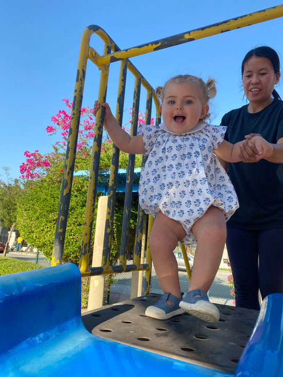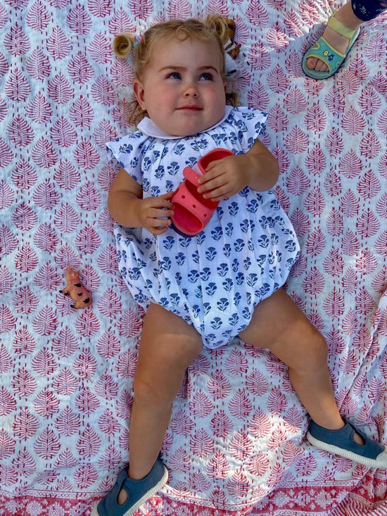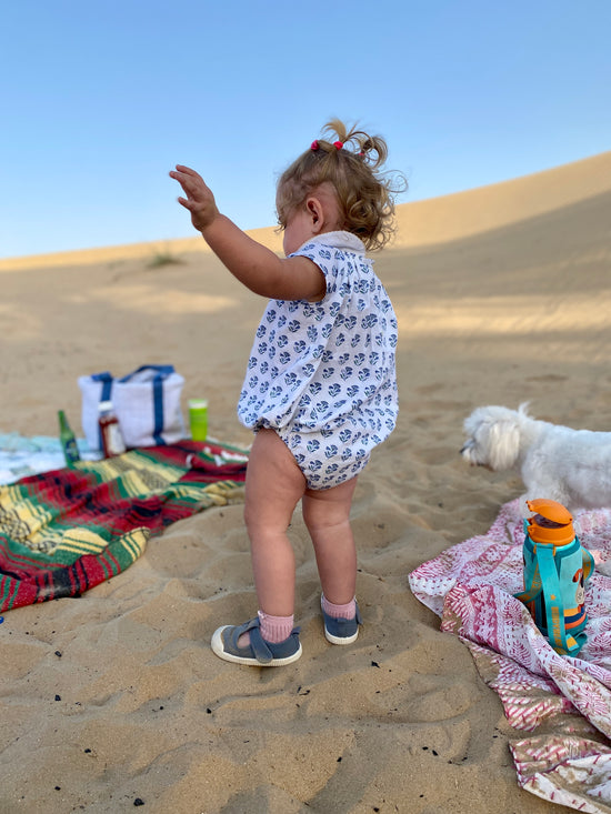 A really pretty girls romper new to the collection this Summer. The rompers are simple and sweet for everyday use in the Summer months and on holidays. The rompers are super versatile as well as being worn on its own they also look lovely under dungarees, shorts or a skirt.