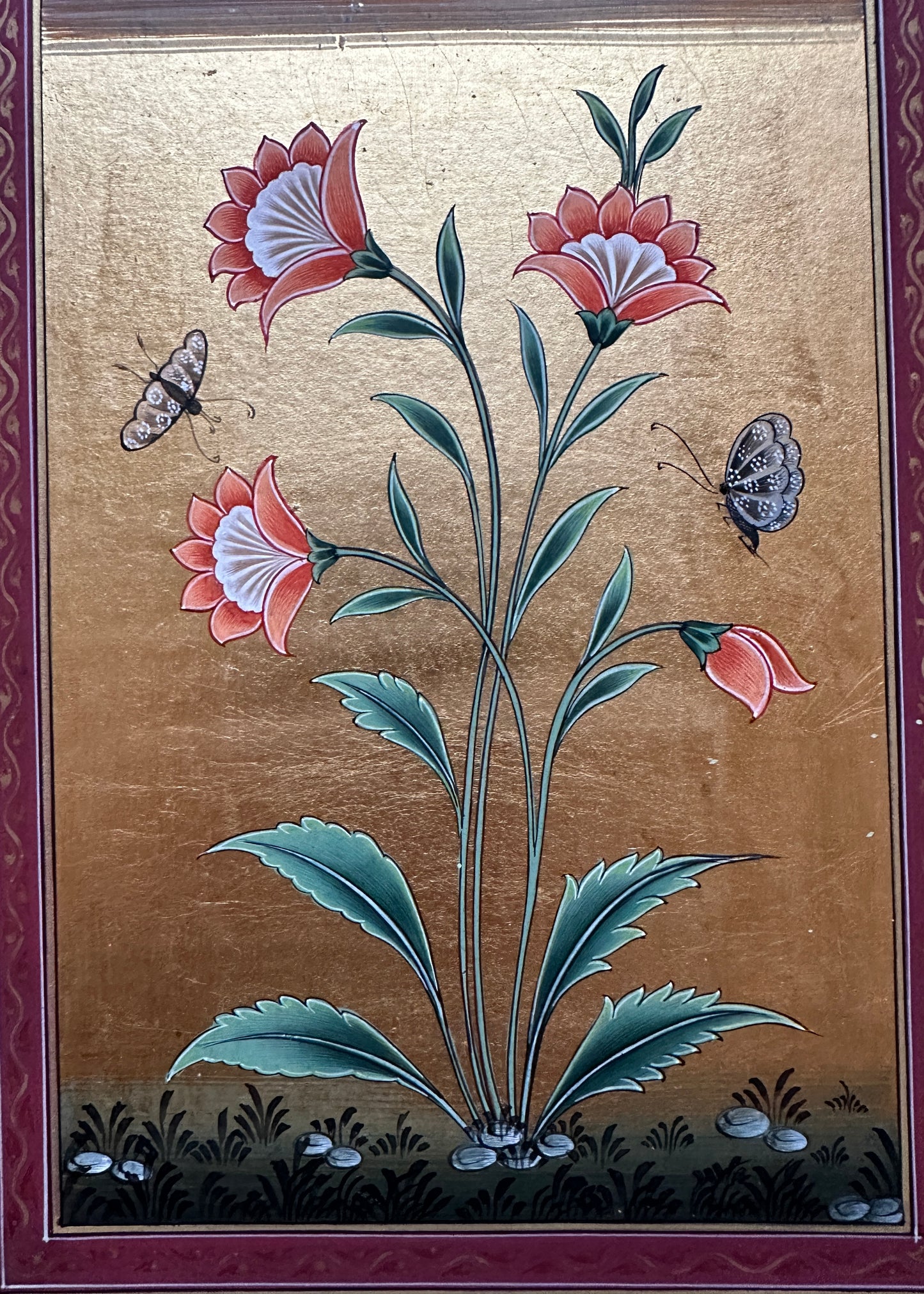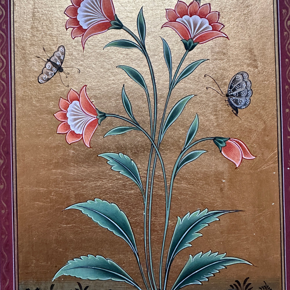 This piece is from a limited collection of gold leaf paintings with a Mughal flower in the centre.