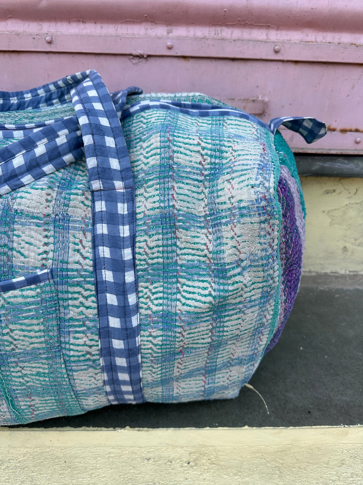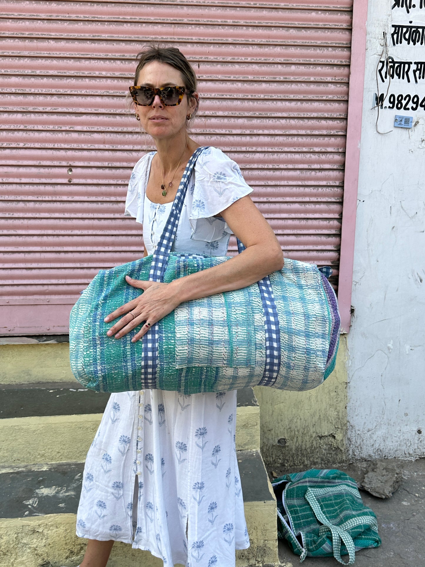 Final collection release: The Kantha weekend bag returns as part of our bag collection, in a perfectly versatile size. Ideal as a children’s weekend bag, beach companion, gym bag, nappy bag or an effortless overnight carry. Lightweight yet durable, each piece is finished with quilted handles that run all the way around for added strength and longevity.