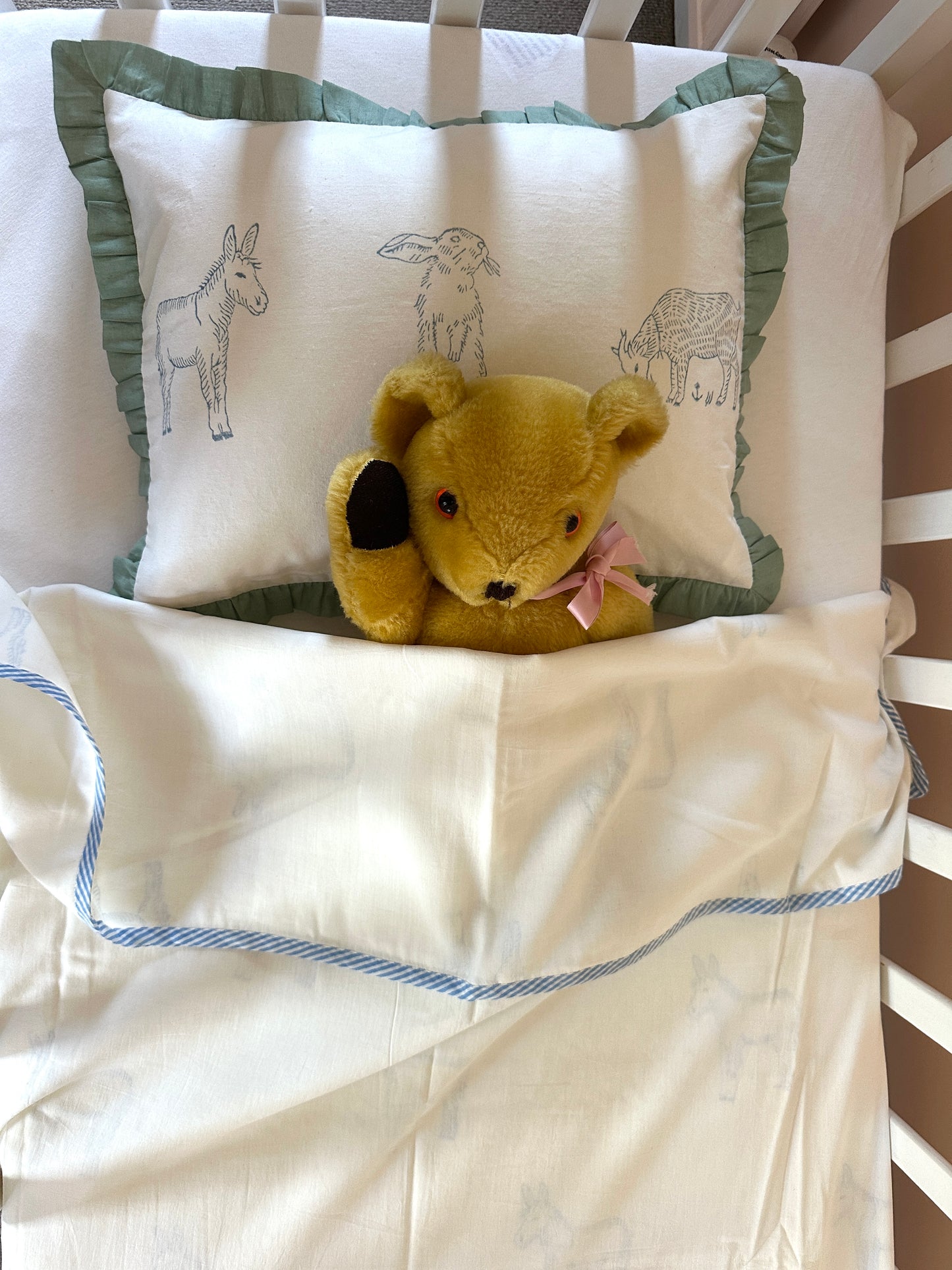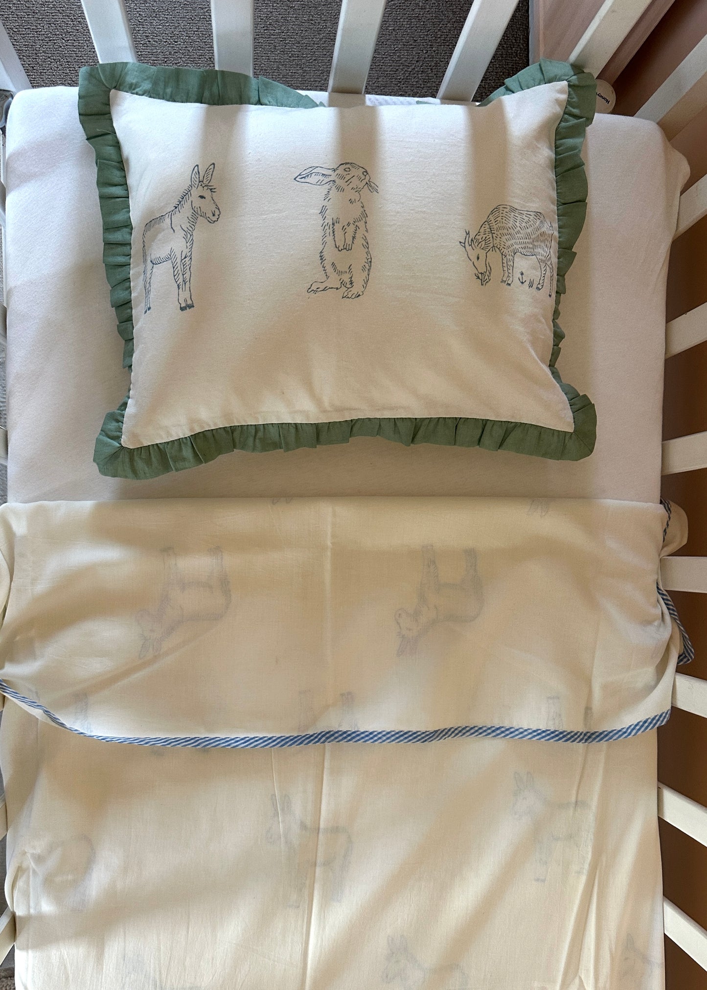 Baby Cotton Pillow Cover – Meadow (Blue / Green)