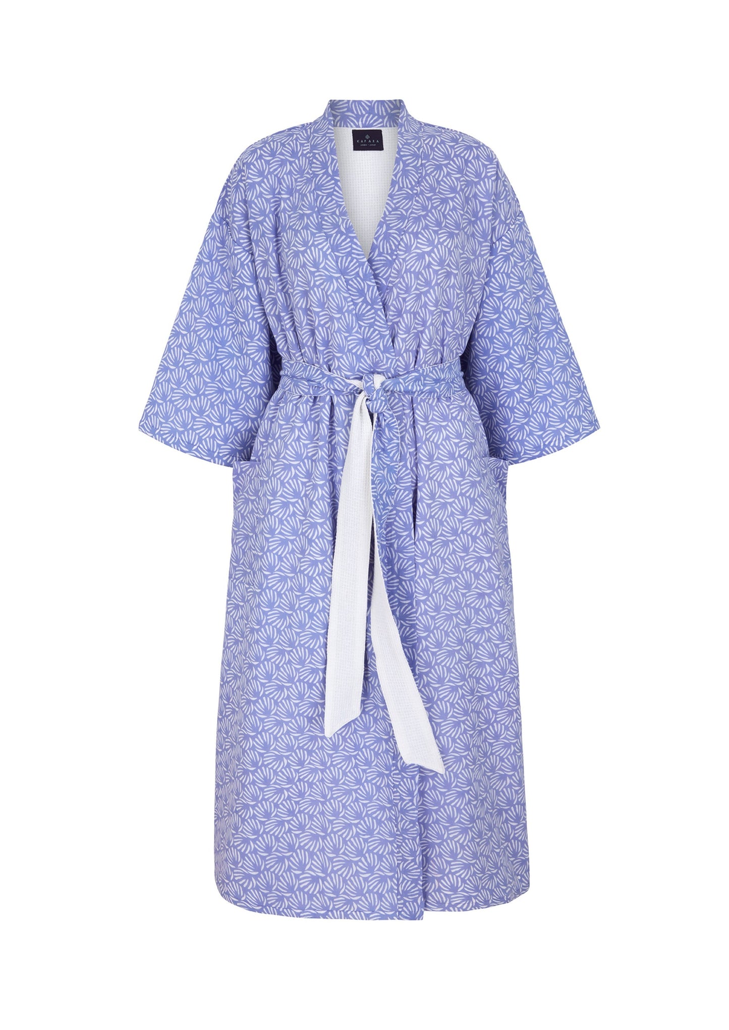 Organic Cotton Dressing Gown in Blue with Waffle Lining