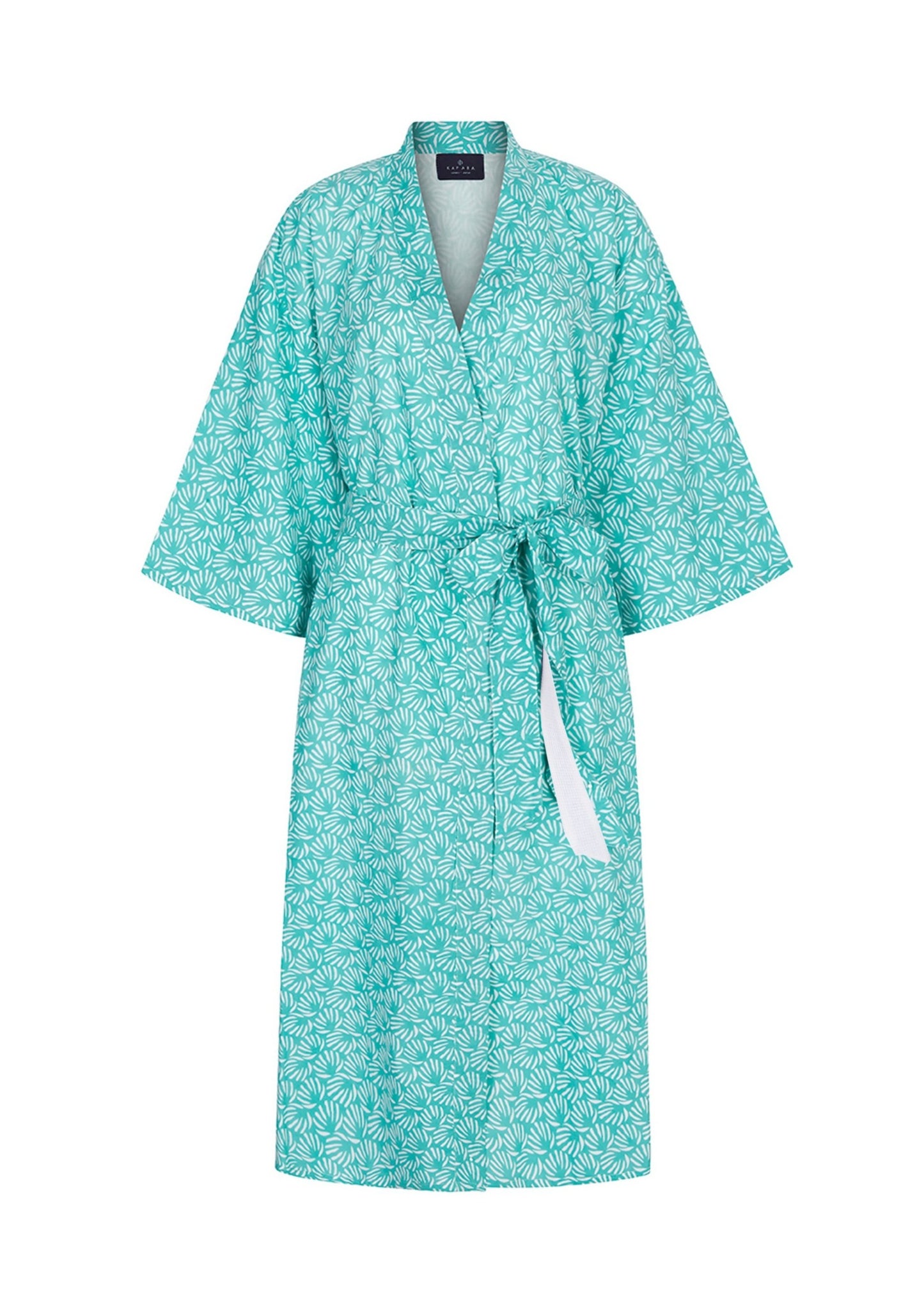 Organic Cotton Dressing Gown in Green with Waffle Lining