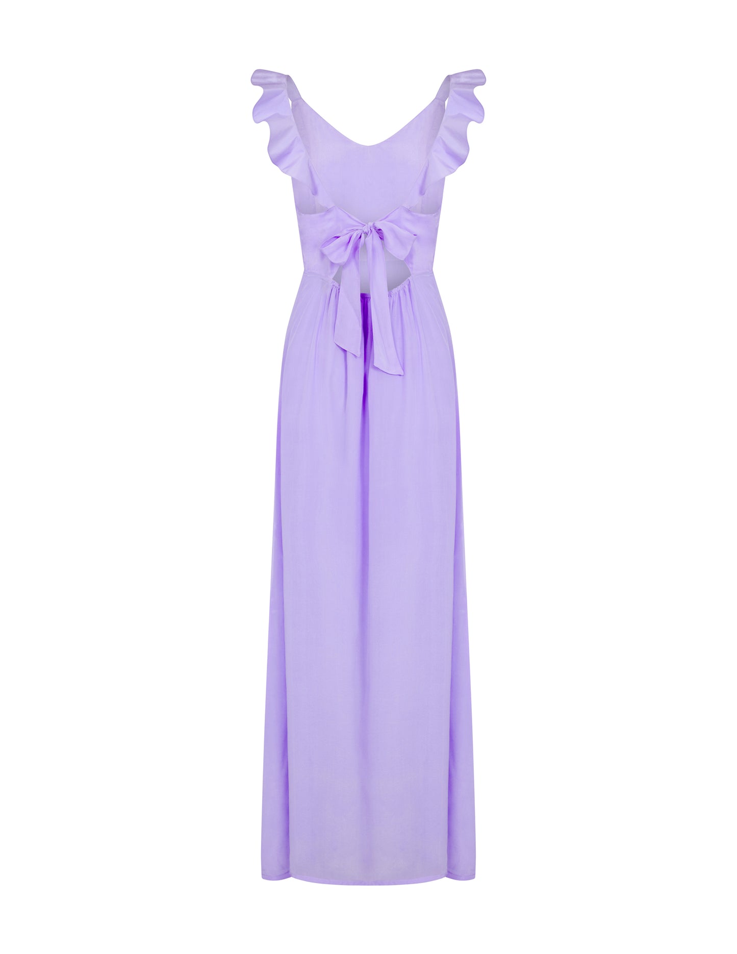 Our maxi dress has a simple front with ruffled straps and bow at back. The dress is made of a crepe silk that is sustainably grown in Northern India. Lolita is perfect for a Summer party, special event, wedding outfit or even as a smarter holiday dress.