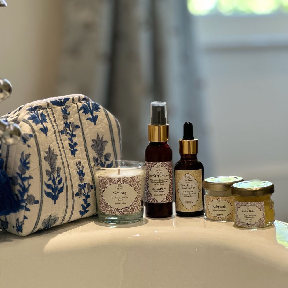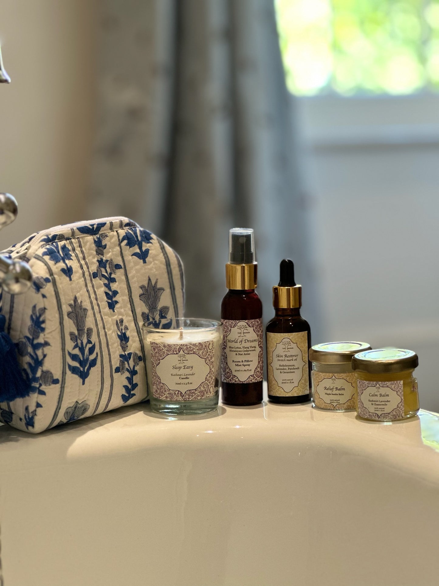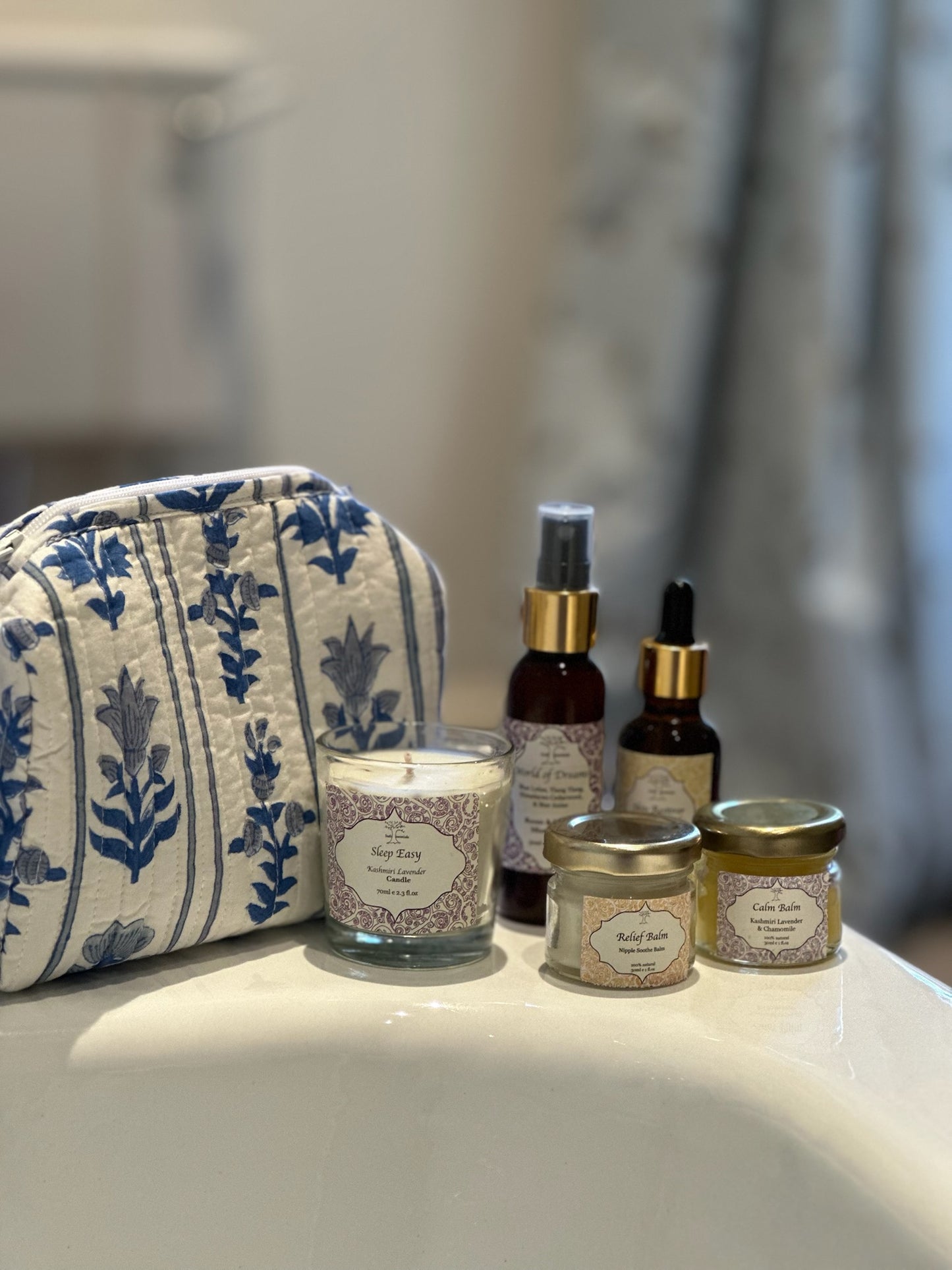 Celebrate motherhood with our thoughtfully curated Pregnancy Wellness Gift, beautifully packed in one of our hand block-printed small washbags. Designed to nurture, soothe and pamper, this all-natural collection supports every stage of pregnancy with gentle, restorative care.
