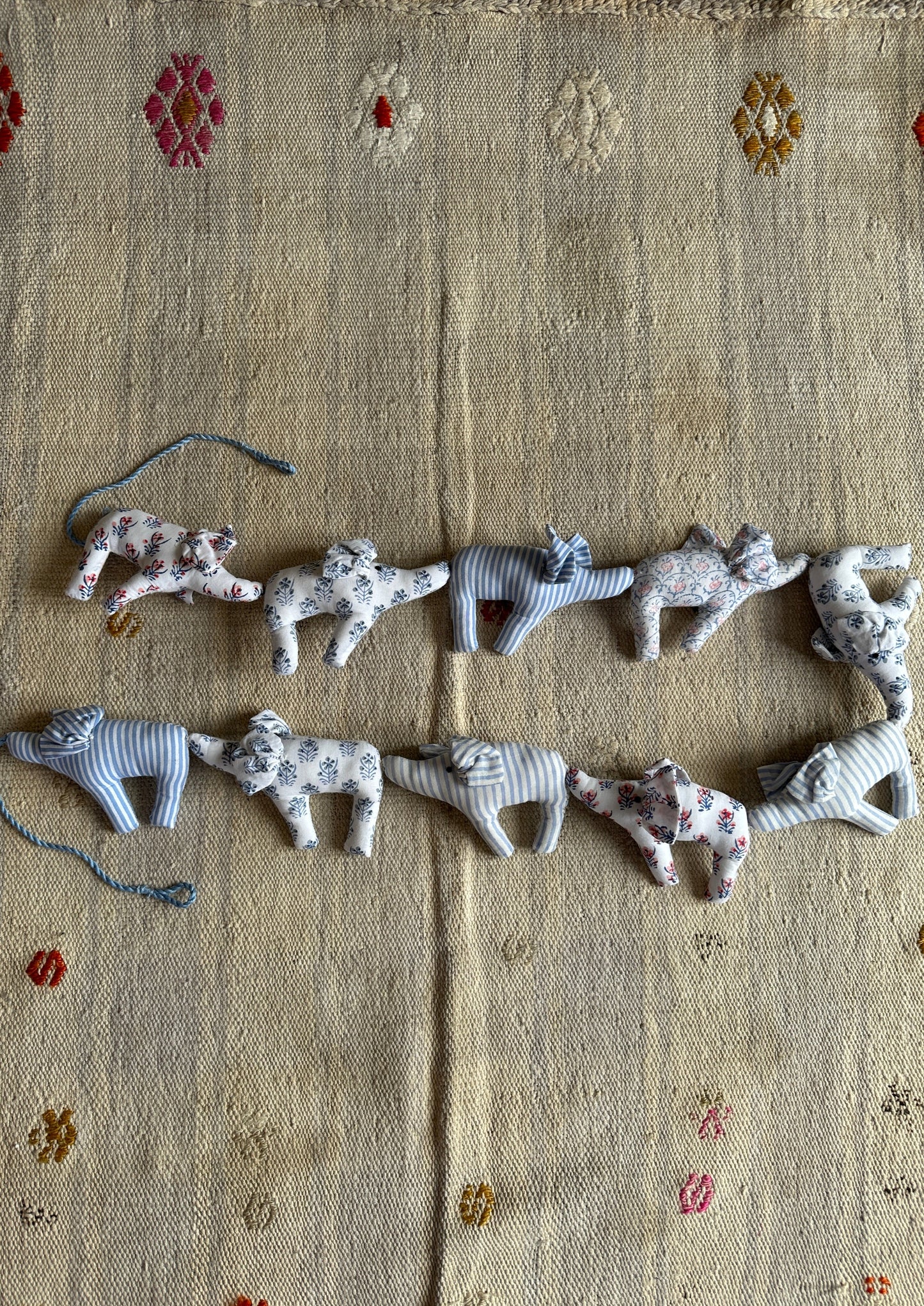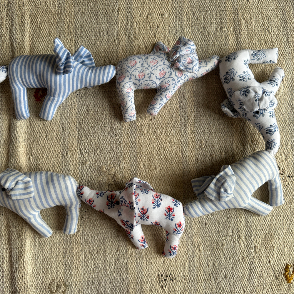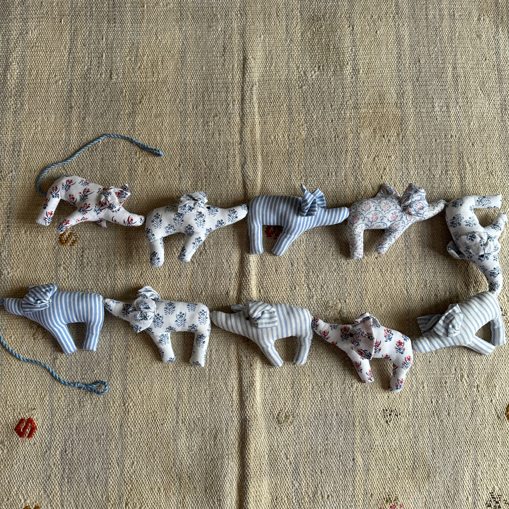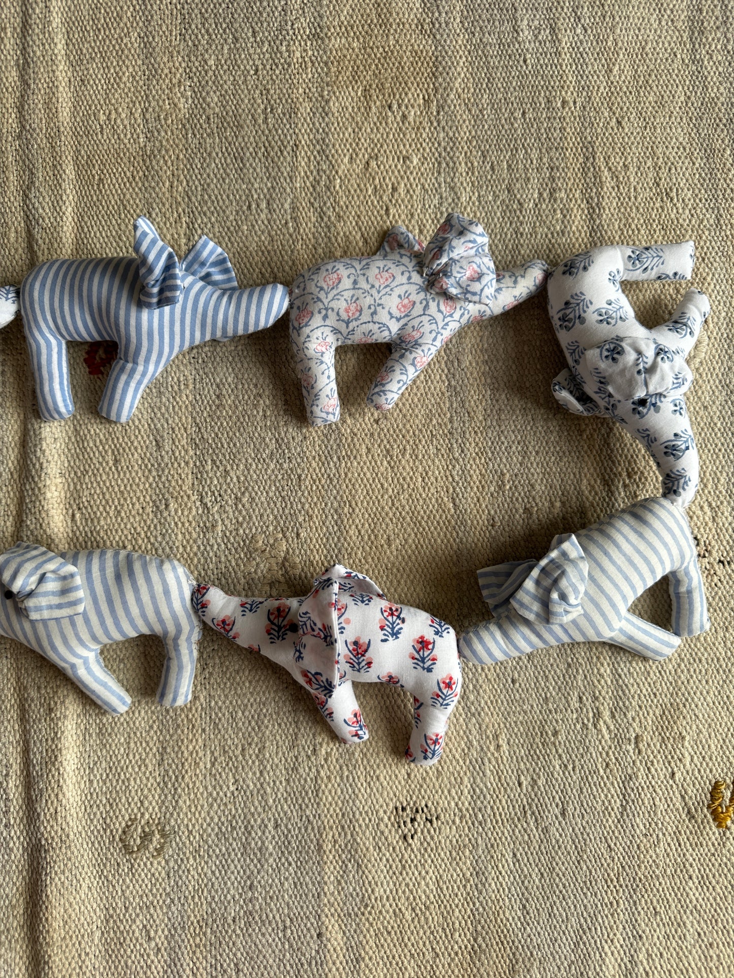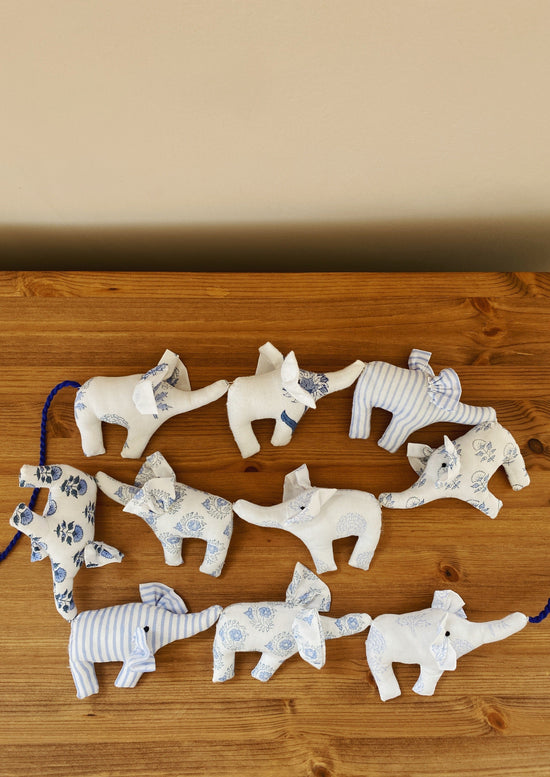 Super sweet and decorative, our elephant bunting is made from the waste fabric used on the other baby items helping with our mission to create zero waste. The bunting is sold either with five elephants or ten elephants. The five elephant strings are perfect for the end of a cot or as a pram mobile and the ten elephant strings look great above a bed, hanging between pictures in a nursery, or decorating a toddler’s nursery tent - this bunting will actually look very sweet anywhere! A different, very sweet and environmentally friendly gift for little ones.