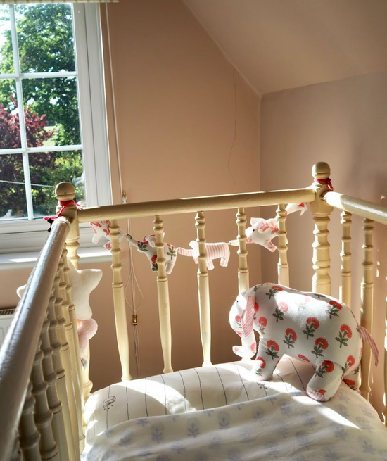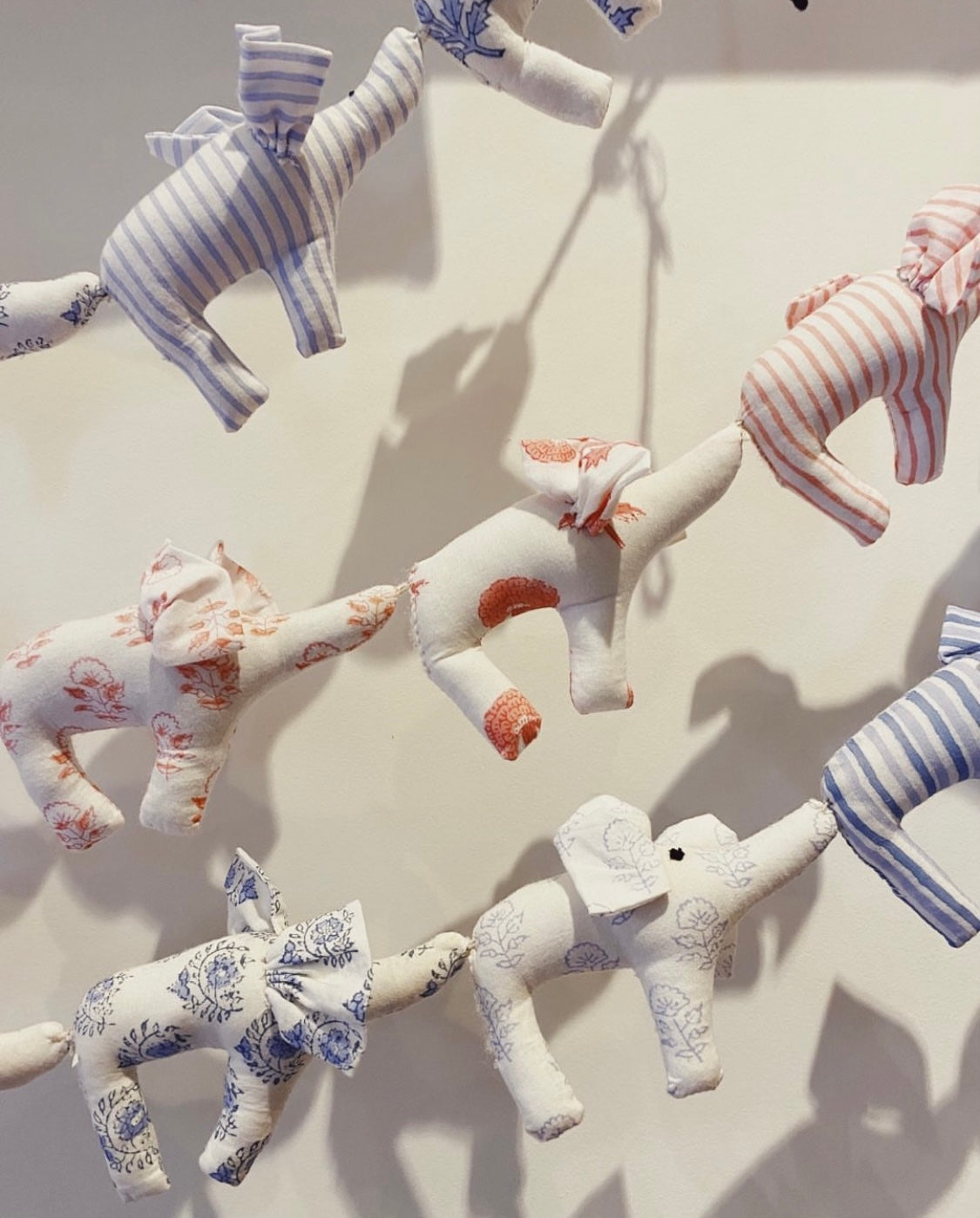 Super sweet and decorative, our elephant bunting is made from the waste fabric used on the other baby items helping with our mission to create zero waste. The bunting is sold either with five elephants or ten elephants. The five elephant strings are perfect for the end of a cot or as a pram mobile and the ten elephant strings look great above a bed, hanging between pictures in a nursery, or decorating a toddler’s nursery tent - this bunting will actually look very sweet anywhere! A different, very sweet and environmentally friendly gift for little ones.