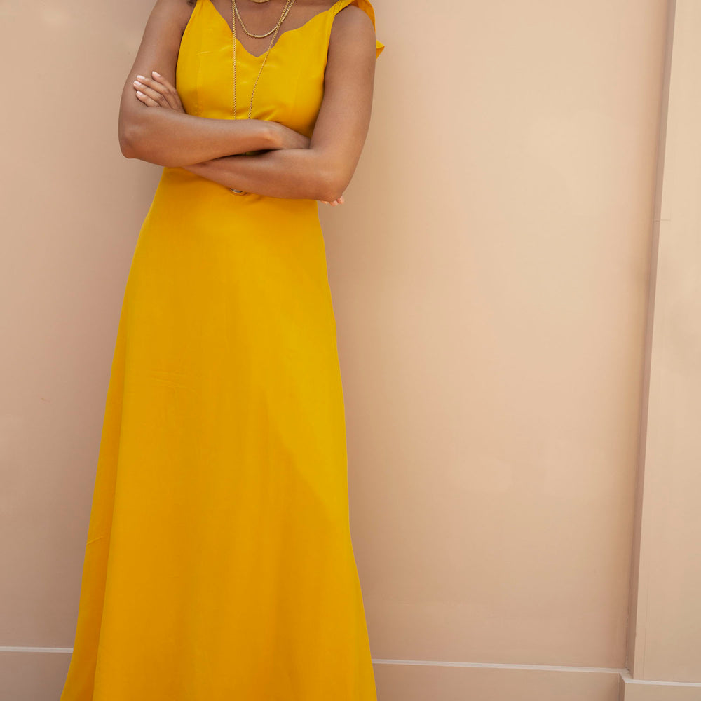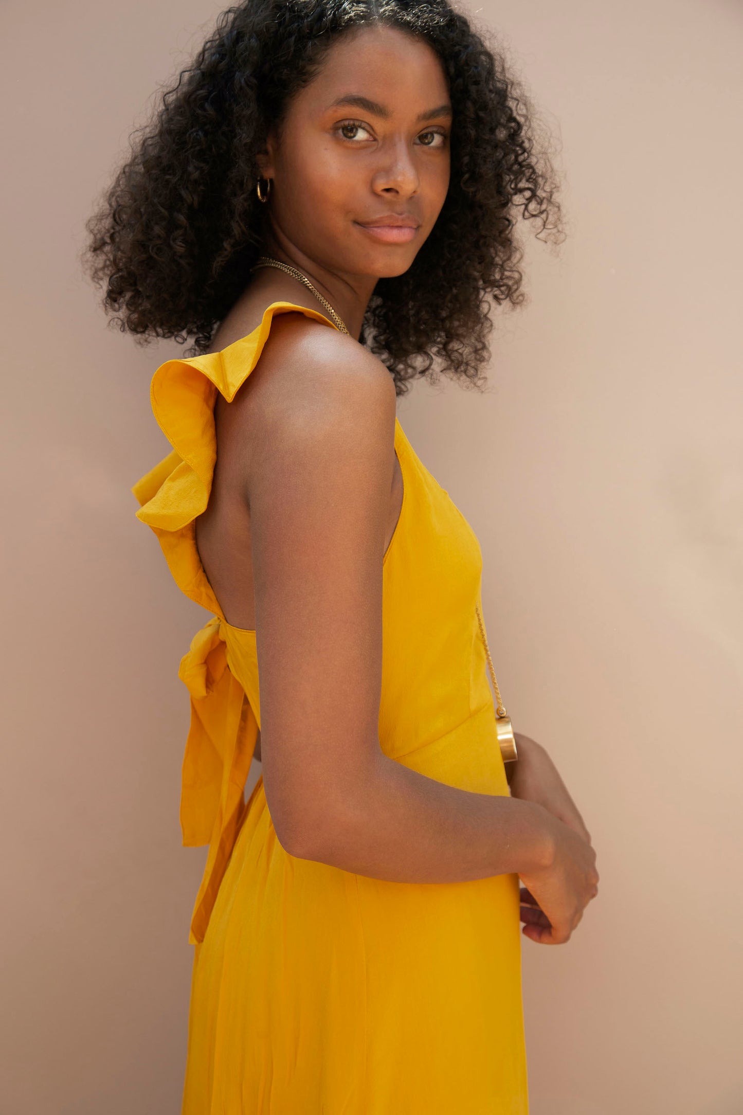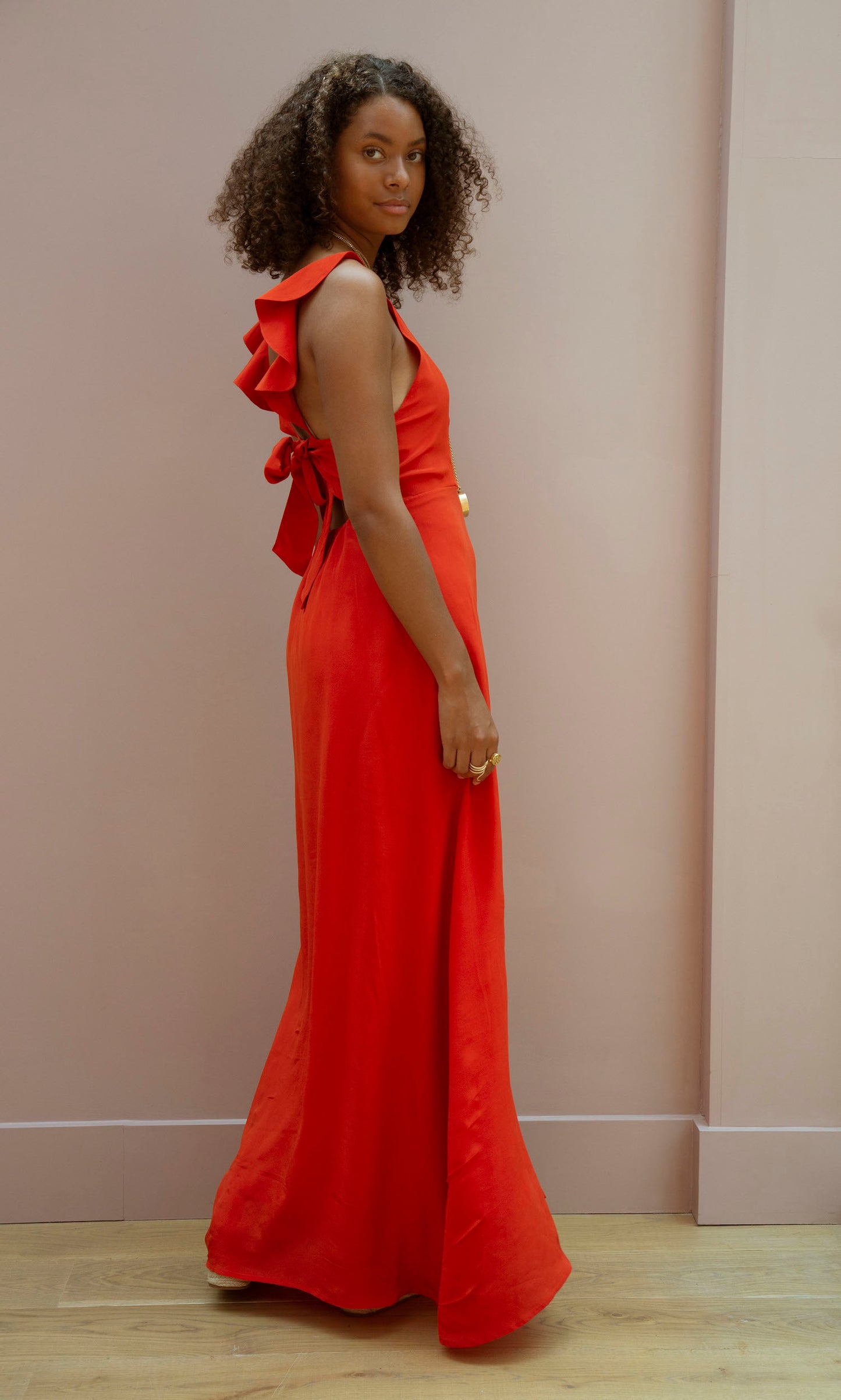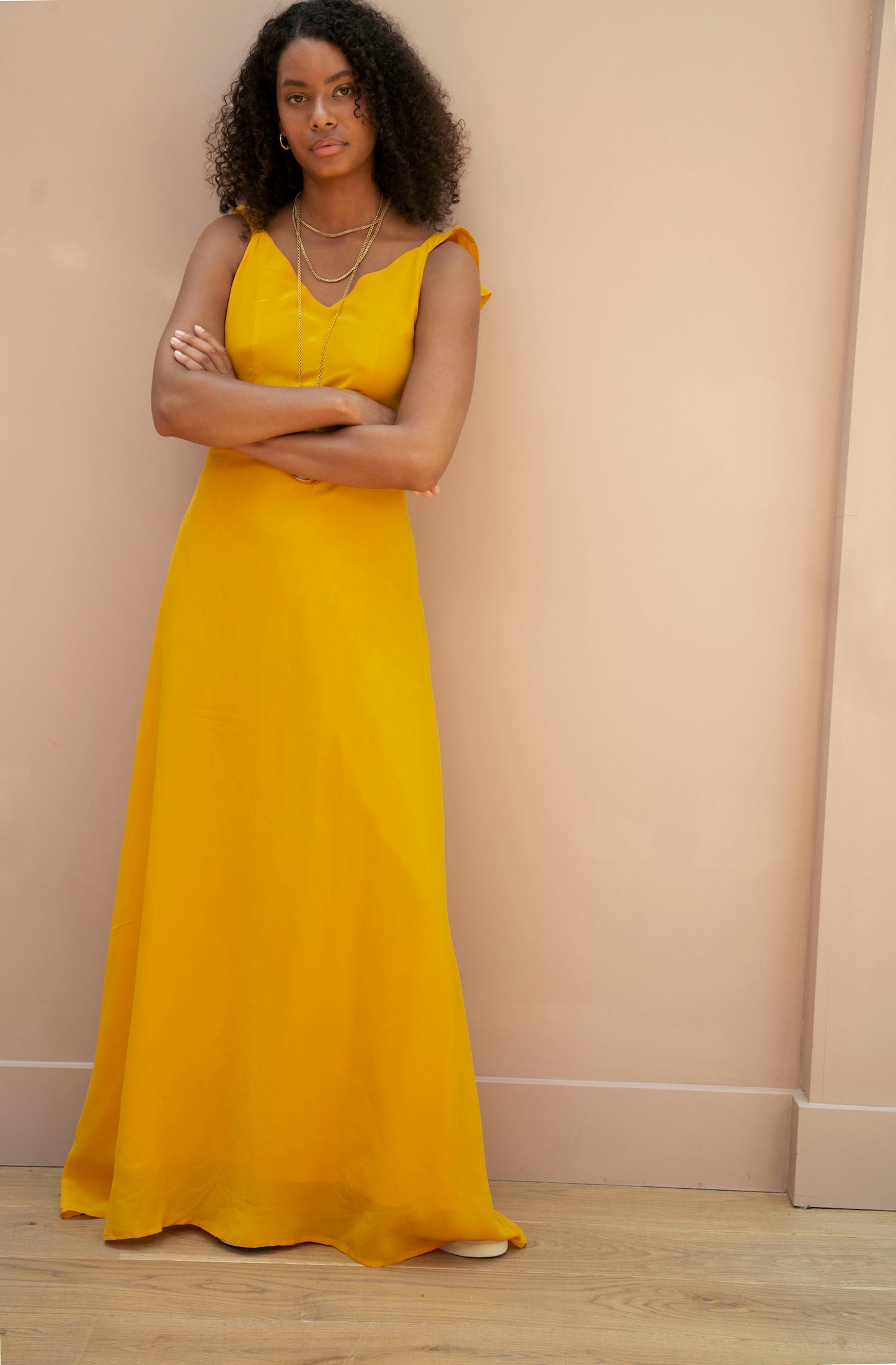 Our maxi dress has a simple front with ruffled straps and bow at back. The dress is made of a crepe silk that is sustainably grown in Northern India. Lolita is perfect for a Summer party, special event or even as a smarter holiday dress.